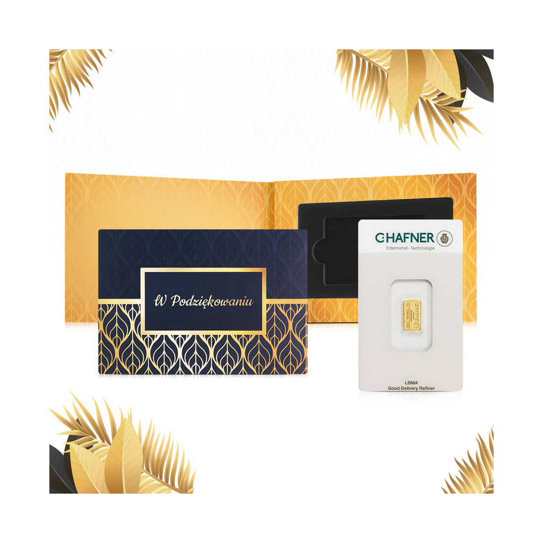 We present a special gift box in which we can place a gold bar in a Certipack*. It has been designed in black and gold colors, which perfectly highlight the beauty of this precious metal. Upon opening, you will find a special place to write your own dedication, making the gold bar a beautiful keepsake.