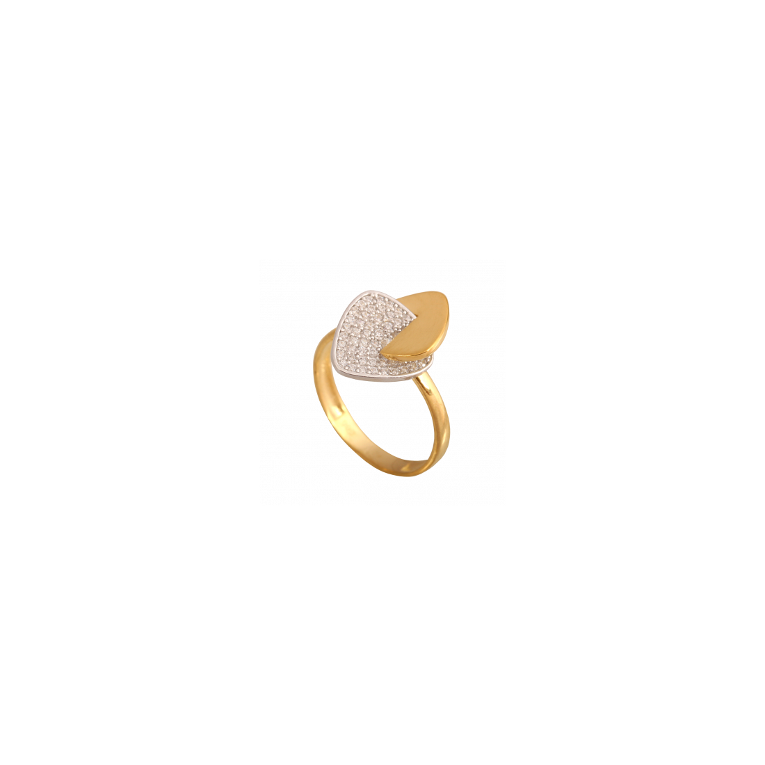 A charming ring made entirely of 14-karat gold with white zirconia stones. The ring features two triangles joined together in an original way, which makes it stand out from the crowd.