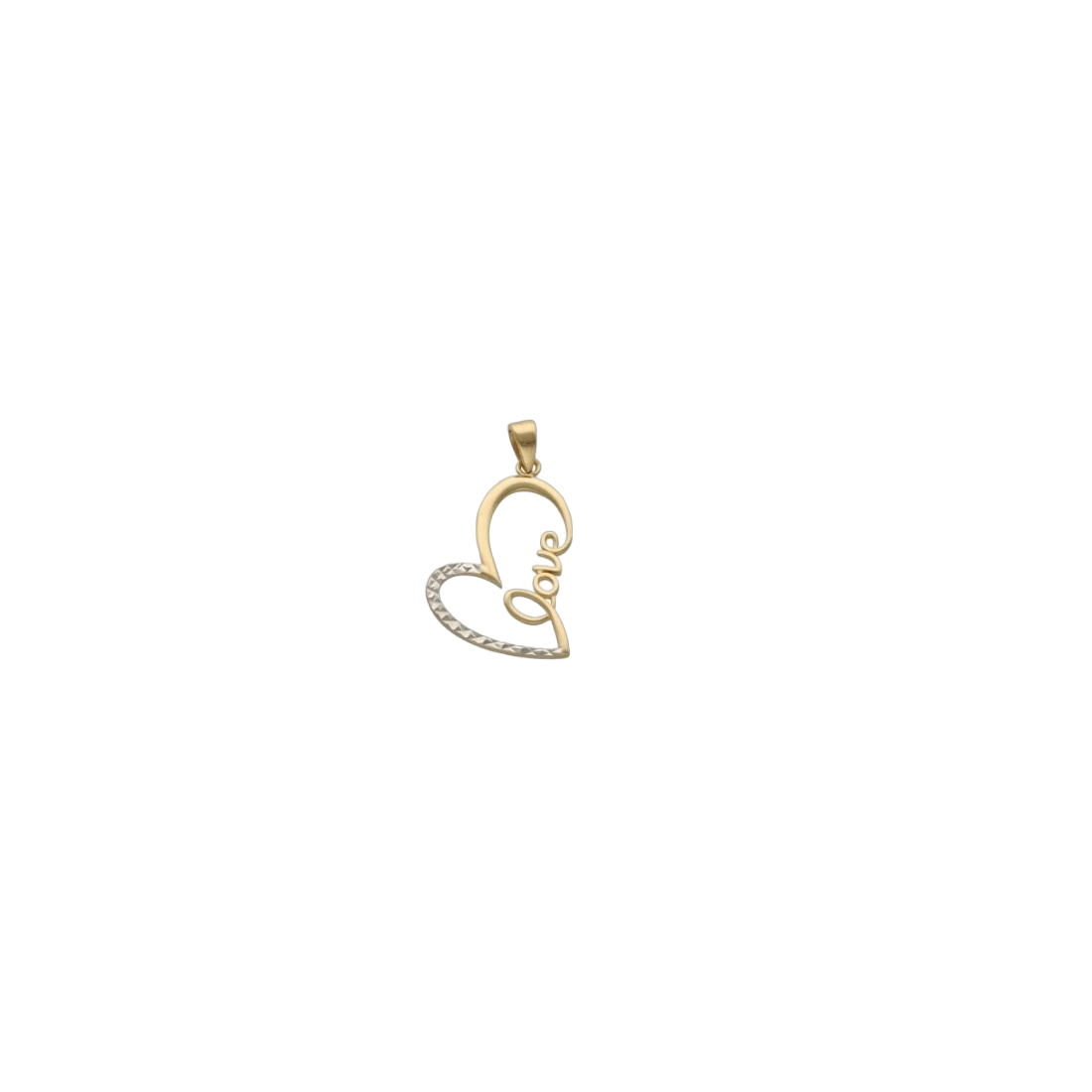 A magical pendant with the word "love" woven into a heart, made entirely of 585/14K yellow and white gold.