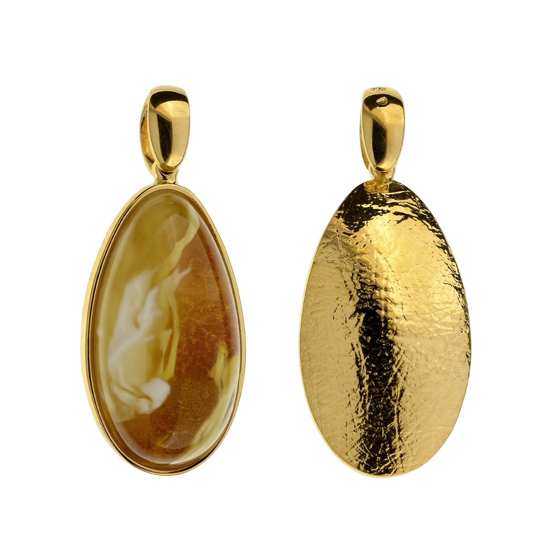 A unique pendant made entirely of gold-plated 925 silver with natural certified Baltic amber in a honey-milk color.