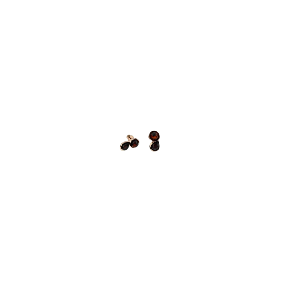 Earrings made entirely of gold-plated 925 silver with natural certified Baltic amber in a cognac-cherry color.