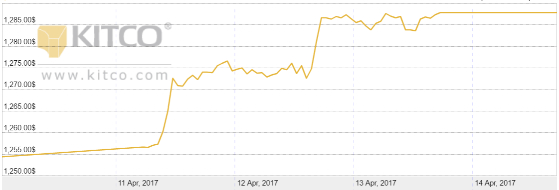 Po tym jak w poprzedni piątek cena złota przekroczyła 1270 USD/oz, osiągając najwyższy poziom od początku listopada, widać było, że rynkom udziela się panujące wokół napięcie. Po weekendzie echa nalotu na syryjską bazę wojskową nieco jednak umilkły w obliczu komentarza szefowej Fed, Janet Yellen, która na nowo rozbudziła oczekiwania co do wzrostu stóp procentowych w USA.