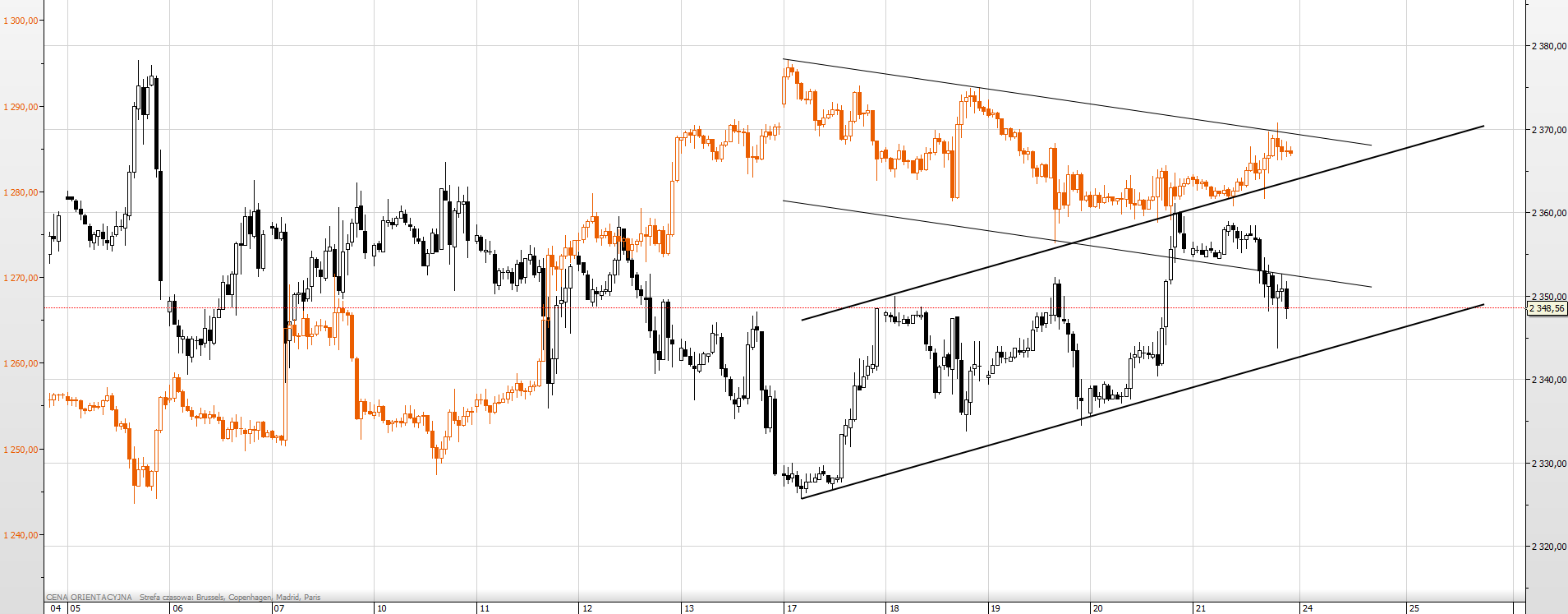 Wykres 2: Złoto kwotowane w USD, interwał 2-godzinowy