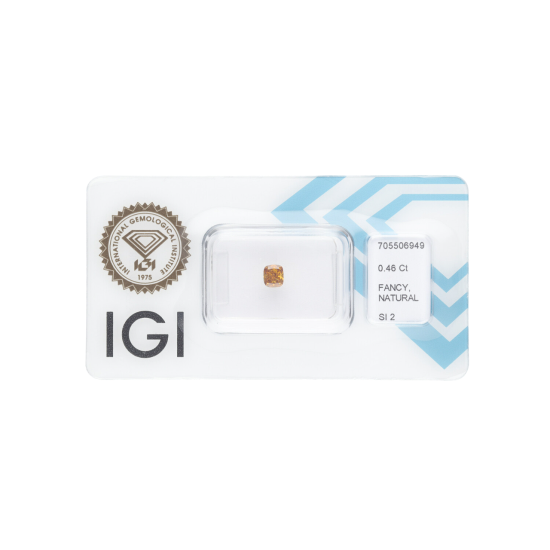 Natural diamond 0.46 CT / Natural Fancy Intense Yellow Orange / Cushion Modified Brilliant / SI2 / VG - 24-hour shipping!