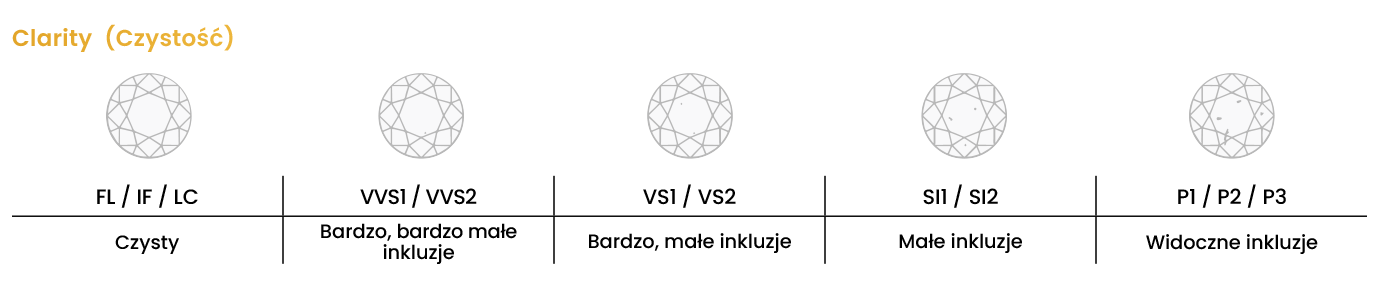 3. Clarity – diamonds may contain minor imperfections, and their level is determined by the clarity scale. Stones that are almost flawless are called "Internally Flawless" IF. Those with large flaws are referred to as "Imperfect" P1, P2, P3.