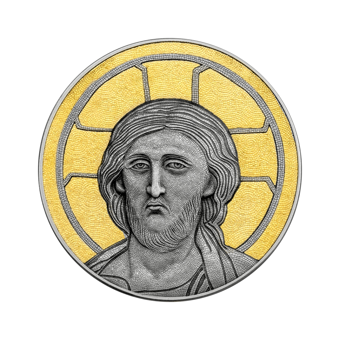 The coin design was inspired by a mosaic depicting Christ Pantocrator, part of the Deesis group in the Hagia Sophia church in Istanbul (formerly Constantinople), which for centuries was the heart of the Christian Byzantine Empire. The interior of the basilica is decorated with marble, intricately carved columns, and stunning mosaics made of stone, gold, and glass. The face of Christ in the mosaic is composed of thousands of tiny pieces, creating an incredibly vivid image, considered one of the greatest achievements of European civilization.