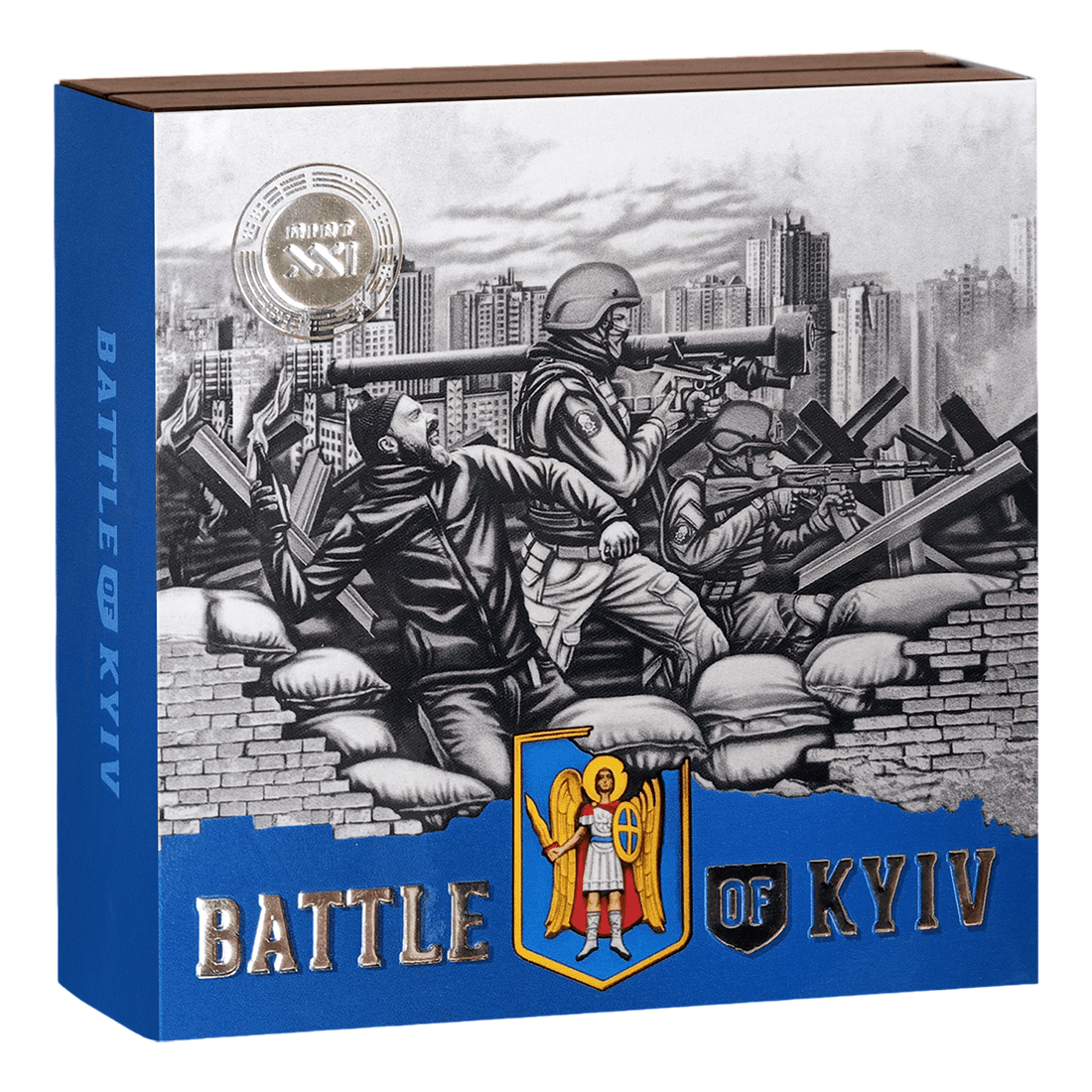 The "Battle of Kiev 2024" coin, made of 2 oz of 0.999 silver, is a solid investment that secures the value of your capital. It combines the raw material dimension with an artistic and symbolic message. Its limited issue and the prestige of Mint XXI increase its uniqueness. The attractive high relief and antiqued finish enhance its collectible value. It is an offer for investors who are looking for security, aesthetics, and history—all encapsulated in one unique coin.