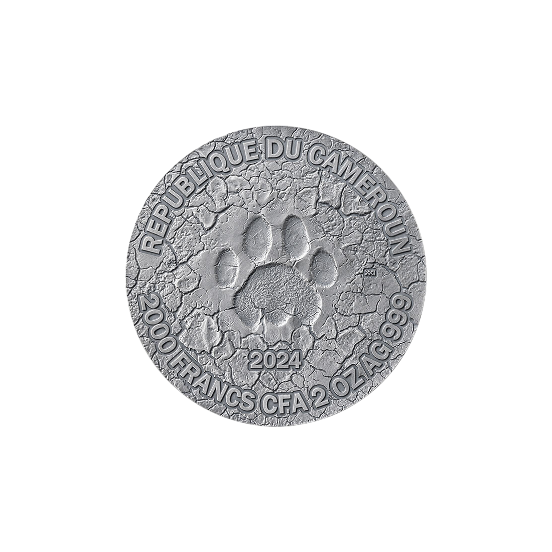Every detail of this silver coin has been refined with extraordinary precision, which is the hallmark of MINT XXI products. The high relief technique makes the figure of the lioness and her cubs stand out from the background, giving the composition a three-dimensionality and realism that cannot be achieved in standard minting. With an impressive diameter of 50 mm and weighing 62.2 grams (two ounces of pure silver), the coin is a true, tangible work of art. The antique finish gives it a noble patina of age, subtly emphasizing the timeless and majestic character of the image. On the reverse, you can admire a majestic lioness, whose calm but alert posture reflects inner strength and protection. She is accompanied by lively, playful lion cubs, symbolizing the continuity of generations, vitality, and the inseparability of the cycle of life in nature. The obverse, which features the coat of arms of the Republic of Cameroon and the denomination, confirms the coin's status as legal tender, further enhancing the credibility of the investment in an international context.
