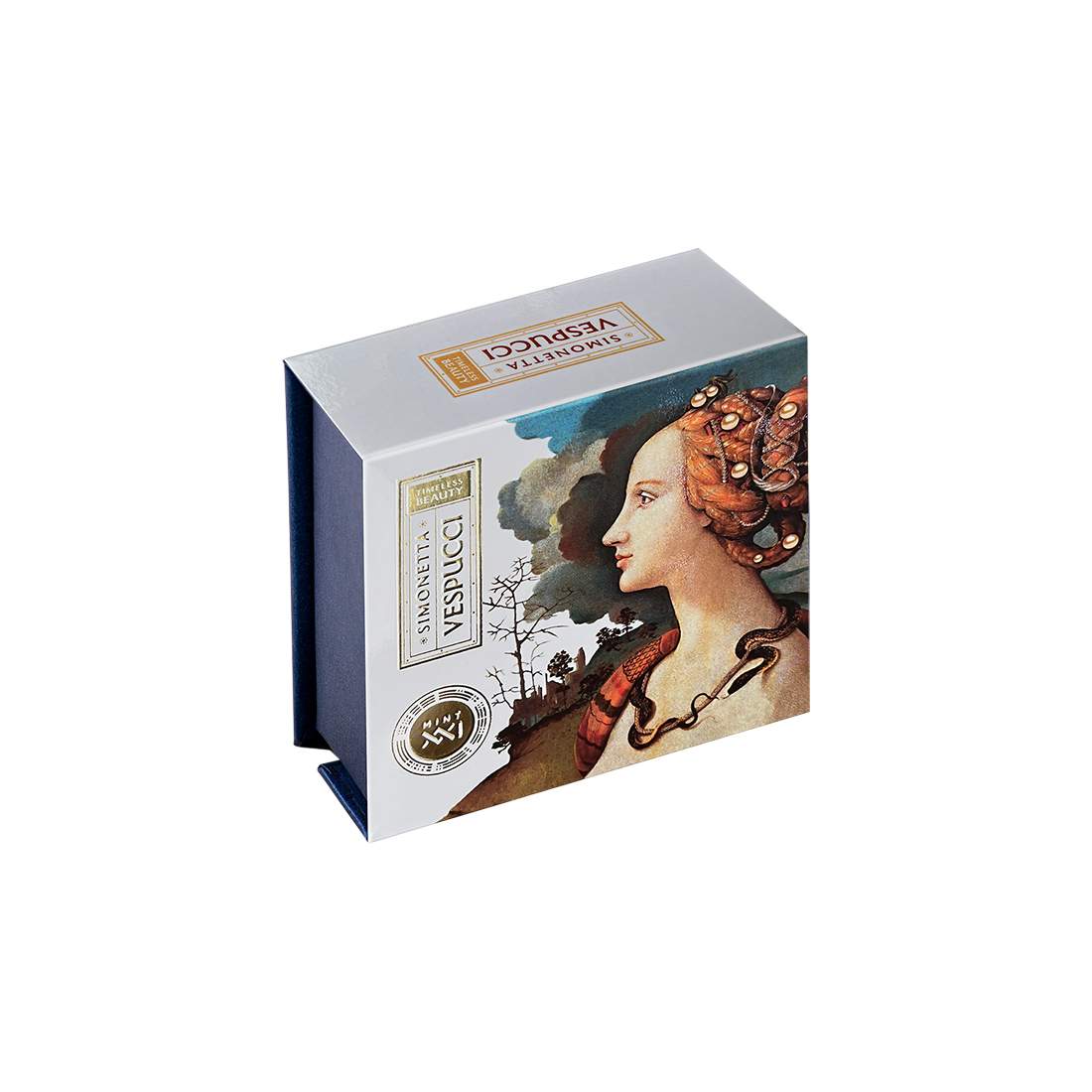 The Simonetta Vespucci coin is a unique asset that combines the historical depth of Renaissance art with the undeniable value of precious metal. Investing in numismatics, especially in such strictly limited editions, is a strategic move for anyone looking for stable assets with collector's growth potential. Simonetta Vespucci, hailed as "the most beautiful woman in Florence" and muse to the greatest masters of the Renaissance, is a subject whose eternal charm guarantees lasting interest. Limited to just 1,000 pieces worldwide, this coin is a desirable and rare addition to any investment portfolio, ensuring its uniqueness on the secondary market. The decision to include this coin in your collection is tantamount to securing your capital in physical silver of the highest fineness, adorned with craftsmanship that goes beyond standard bullion products.