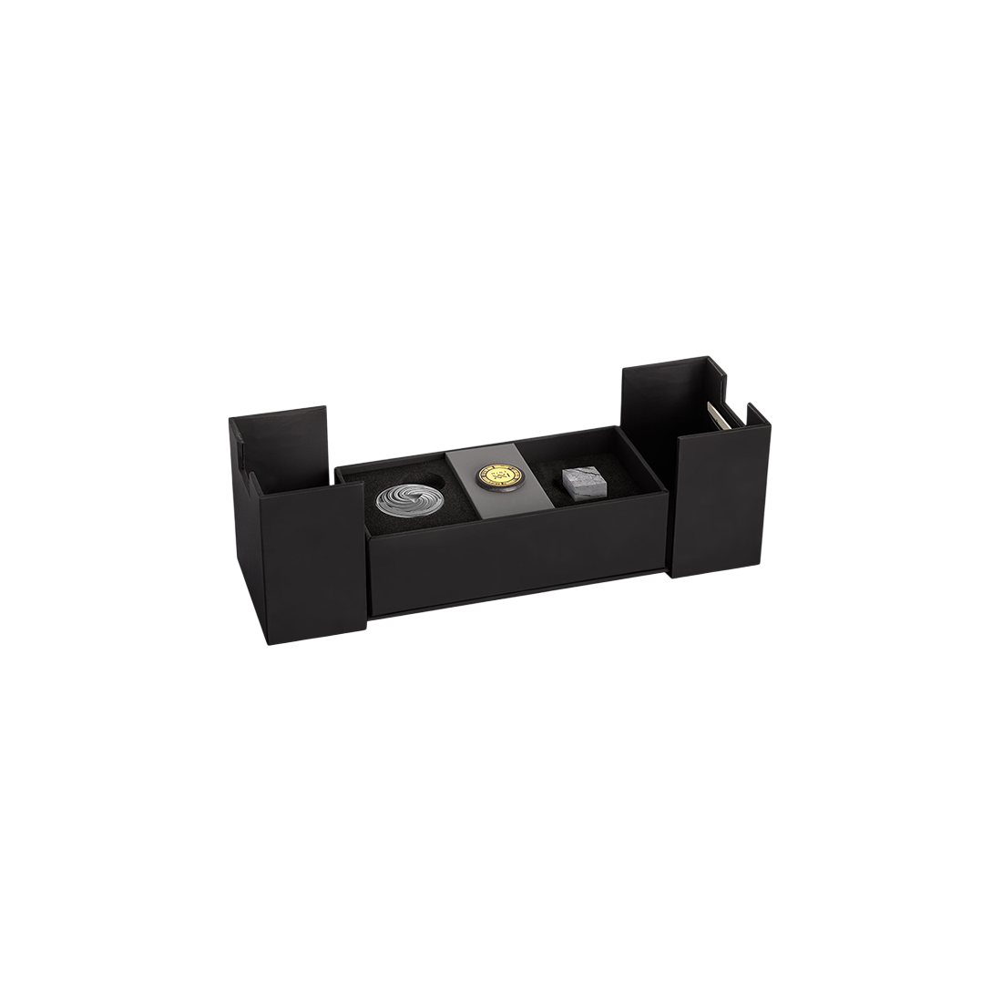 This unique 2-ounce 999 silver coin, minted by the renowned MINT XXI mint, impresses with its form and quality of workmanship. The round coin with a high-quality Antique Finish serves as a base, symbolizing an ancient impact crater. A cube of pure Campo del Cielo meteorite, measuring precisely 16 mm x 16 mm, is integrated into the center of the composition. The combination of an exquisite collector's coin with pure, extraterrestrial material has created an object that exudes a unique aura. As a result, every detail of this numismatic item reflects mastery and attention to detail, while also representing a safe investment in numismatic art. The coin is legal tender in the Republic of Ghana, which further cements its status as a valuable asset, and its unique design, which goes beyond the traditional framework, makes it a desirable item on the global collectors' market.