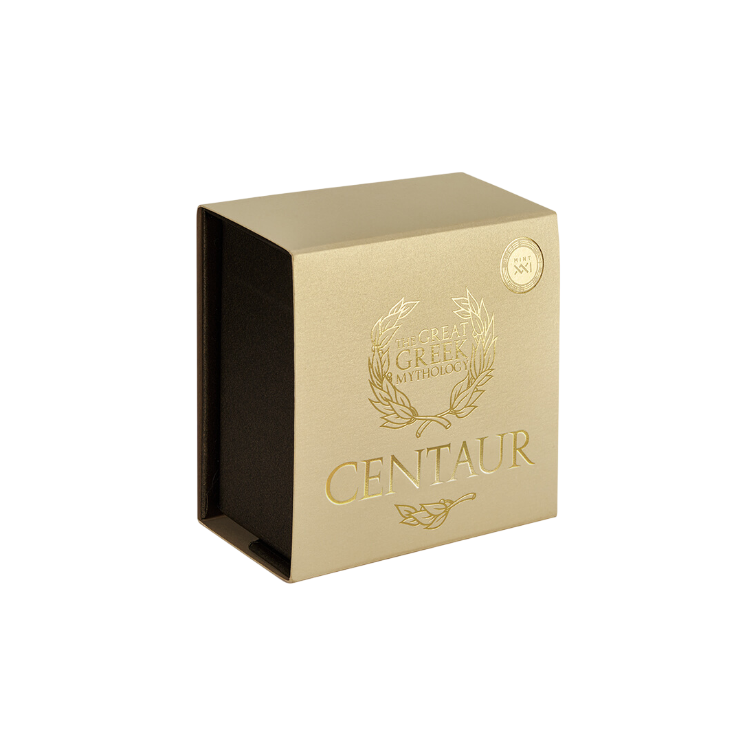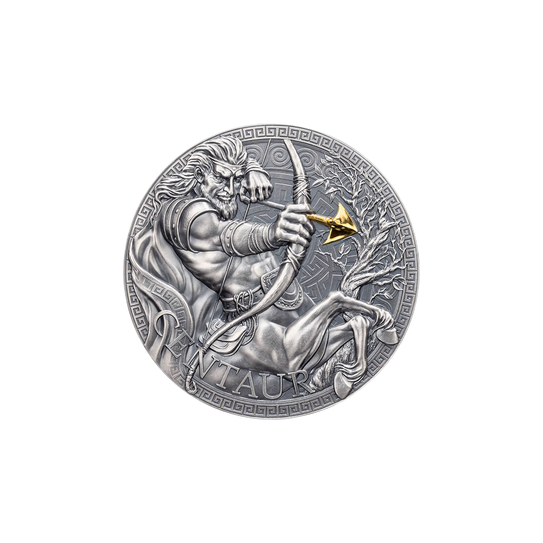 This coin was minted by the renowned MINT XXI mint and belongs to the highly regarded "The Great Greek Mythology" series. What makes this coin stand out is its extremely low mintage, limited to just 500 pieces worldwide. Such a drastic limitation in availability makes each piece a rarity sought after by collectors and investors around the world. The design features a unique combination of high relief and selective gilding. The high relief captures the dynamic figure of the Centaur in detail, showcasing its strength and masculinity, which appears almost three-dimensional. In turn, the subtle, selective gilding emphasizes details such as the arrow, symbolizing the speed and untamed nature of the mythical creature. The Antique Finish gives the coin a historical patina, enhancing the impression of encountering an artifact from centuries ago.