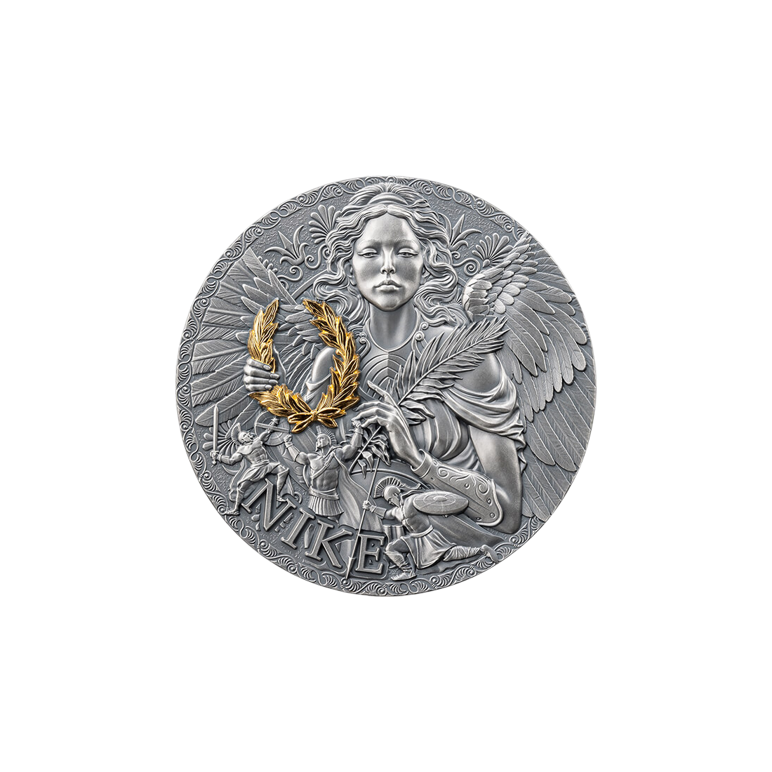 Add a unique silver coin from the Great Greek Mythology series, dedicated to the goddess Nike, to your investment portfolio. Issued in 2024, this two-ounce coin combines artistic excellence with investment potential. Nike, the personification of victory, speed, and strength, is a timeless motif that adds prestige to this issue. The coin is made of pure 999 silver, and its unique character is emphasized by advanced minting techniques. The stunning high relief and carefully applied antique finish give it an antique look. In addition, selective gilding, often on the laurel wreath symbolizing triumph, enhances its collectible appeal. Such limited and detailed numismatic items usually appreciate in value faster than standard bullion coins, being sought after by serious collectors and investors around the world. Investing in precious metals with strong collector's value is a sensible and far-sighted strategy.