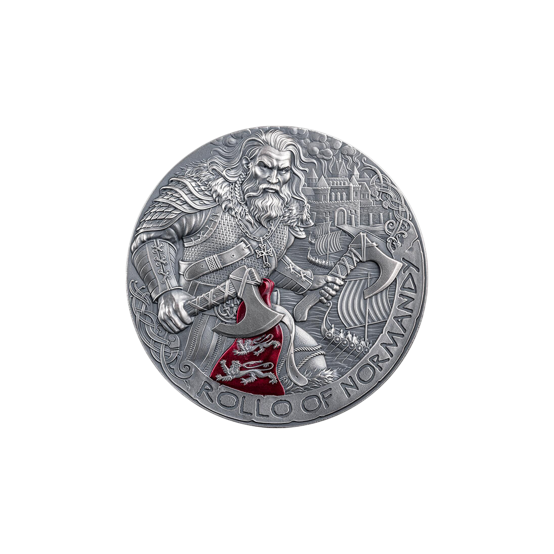 The "Rollo of Normandy" coin from the "Road to Valhalla" series is a unique proposition for investors seeking a combination of precious metal value and numismatic potential. Rollo, a brave Viking who became a wise ruler and founder of Normandy, is a figure standing on the borderline between history and myth. His transformation from a feared invader of Europe to a statesman who, in 911, concluded a pact that gave birth to a powerful duchy, testifies to his unquestionable importance. This coin, weighing two ounces of pure 999 silver, is more than just precious metal; it is a piece of history preserved in precious metal. The limited mintage of only 500 pieces worldwide makes it an asset of increased rarity, which is a key factor in its rapid increase in value after the issue run is sold out. Coins with such strict limitations often increase in value because collector demand exceeds availability. Purchasing this edition is a strategic addition to your investment portfolio with a solid, physical, and rare component.