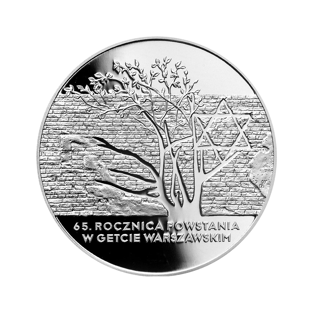 The history of this coin refers to the commemoration of the 65th anniversary of the Warsaw Ghetto Uprising – one of the most tragic and symbolic events of World War II. The uprising, which began in April 1943, was the first armed rebellion of the urban population against German occupation in Europe and an expression of the desperate struggle for dignity and the right to freedom in the face of the planned extermination of Warsaw's Jewish community.