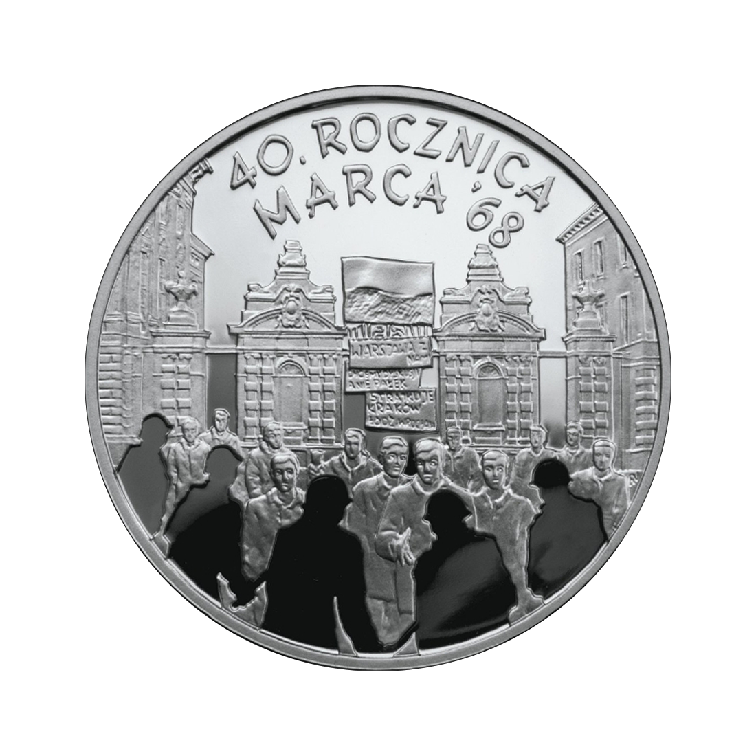 Description of the silver coin Poland's Road to Freedom: 40th Anniversary of March 1968