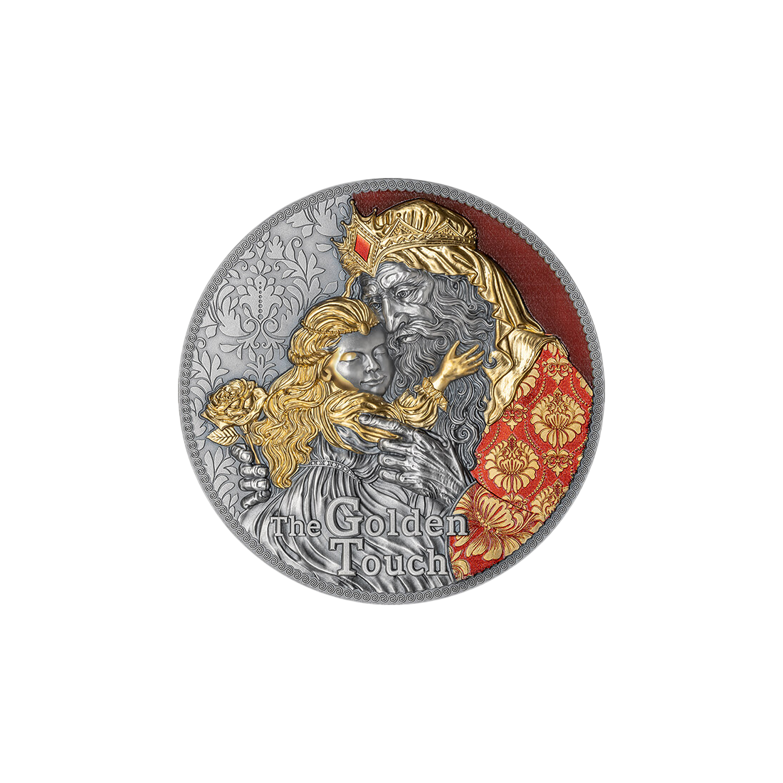 The coin depicts a legendary scene from mythology about King Midas, whose dream of unlimited wealth turned into personal tragedy. The use of high relief technique gives the details three-dimensional depth, which, combined with the antique finish, emphasizes the historical character of the motif. Selective gilding perfectly captures the moment when everything the king touched turned to gold, including his beloved daughter. Precise digital printing adds realism to the composition, creating a product that goes beyond the scope of an ordinary coin to become a true work of minting art.