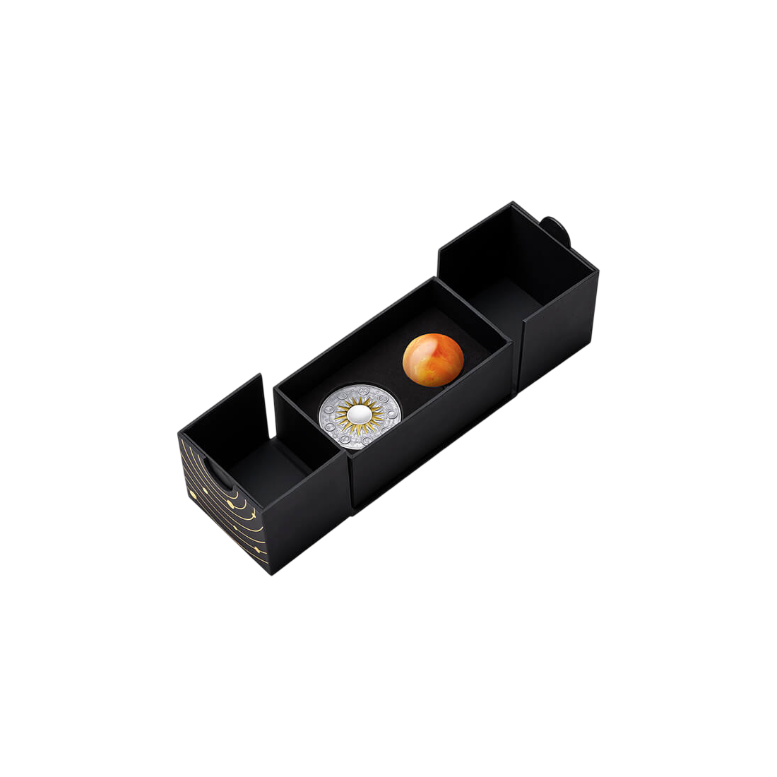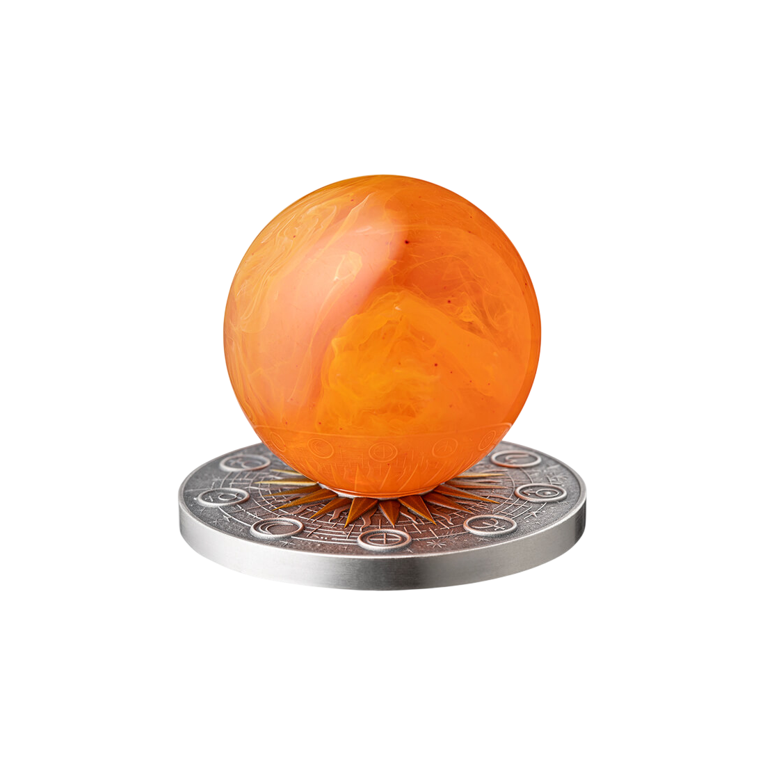 The coin stands out thanks to the use of modern minting techniques, which give it a unique character. The reverse depicts the center of our solar system – the Sun, which has been highlighted with an insert made of real amber. The use of this natural material perfectly captures the energy and color of the star. The whole is adorned with an impressive Antique Finish, which emphasizes the depth of detail and gives the coin a noble appearance. The reliefs depicting the orbiting planets have been made with the utmost precision, making the product attractive to the most demanding aesthetes.