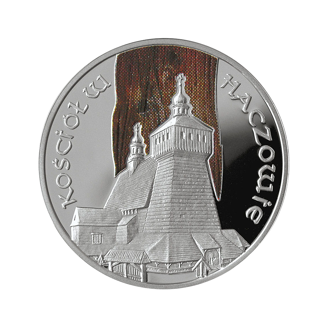 The "Church in Haczów" coin was created as a numismatic commemoration of one of the most valuable monuments of wooden sacred architecture in Poland – the monumental Gothic temple in Haczów. Its issue is intended to reflect the significance of this building as a unique example of cultural heritage, which has remained almost unchanged since medieval times and has also been recognized internationally. The church is considered the largest and one of the oldest wooden Gothic churches in Europe, and in 2003 it was inscribed on the UNESCO World Cultural and Natural Heritage List due to its historical and architectural value.