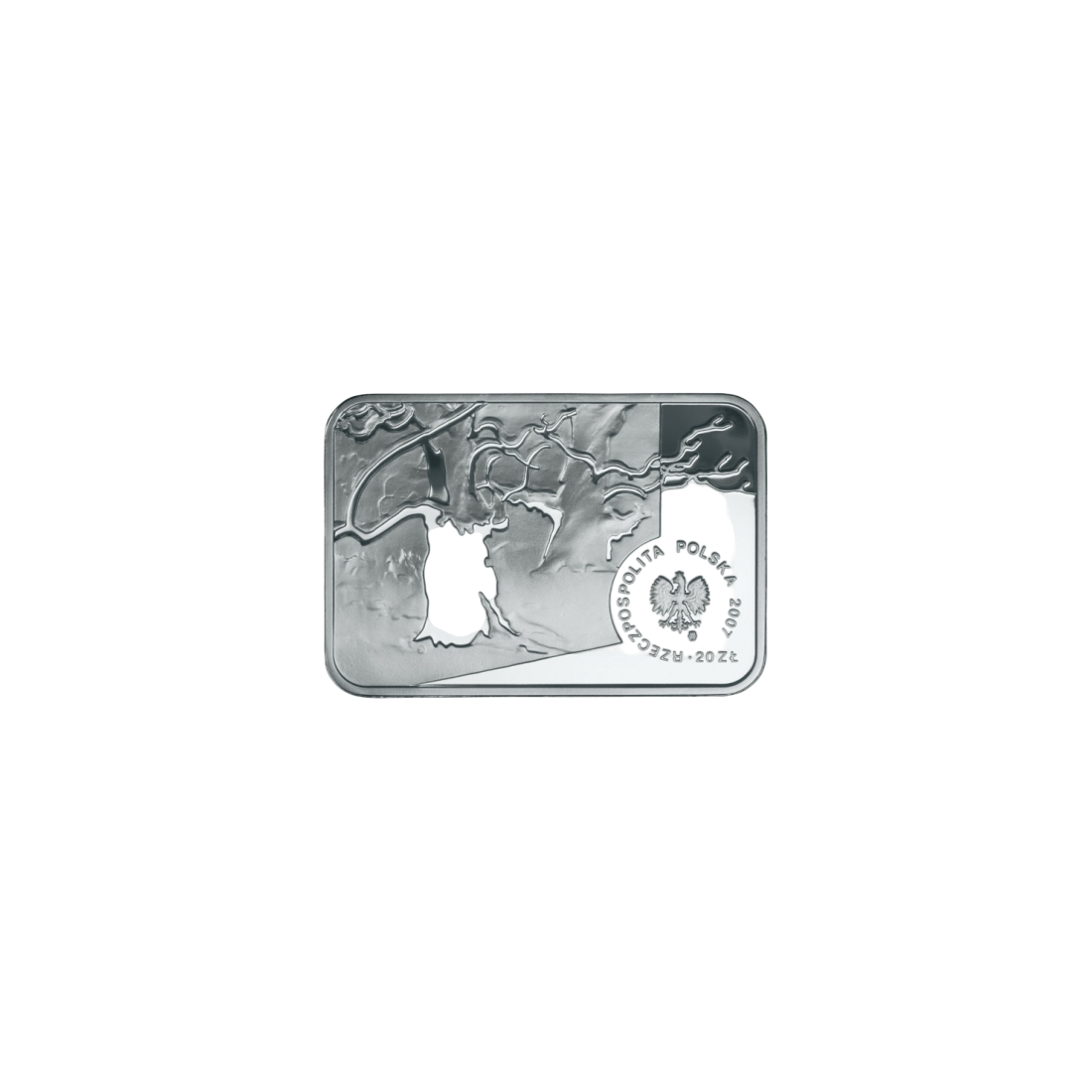 The reverse of the coin features a stylized fragment of the painting "Rogalin in Winter" from 1925. At the bottom, on the right, there is an image of the eagle established as the emblem of the Republic of Poland. Around the eagle are the inscriptions "20 zł" and "RZECZPOSPOLITA POLSKA" (Republic of Poland), and below, the year of issue, "2007." Under the eagle's left talon is the mint mark "m/w."