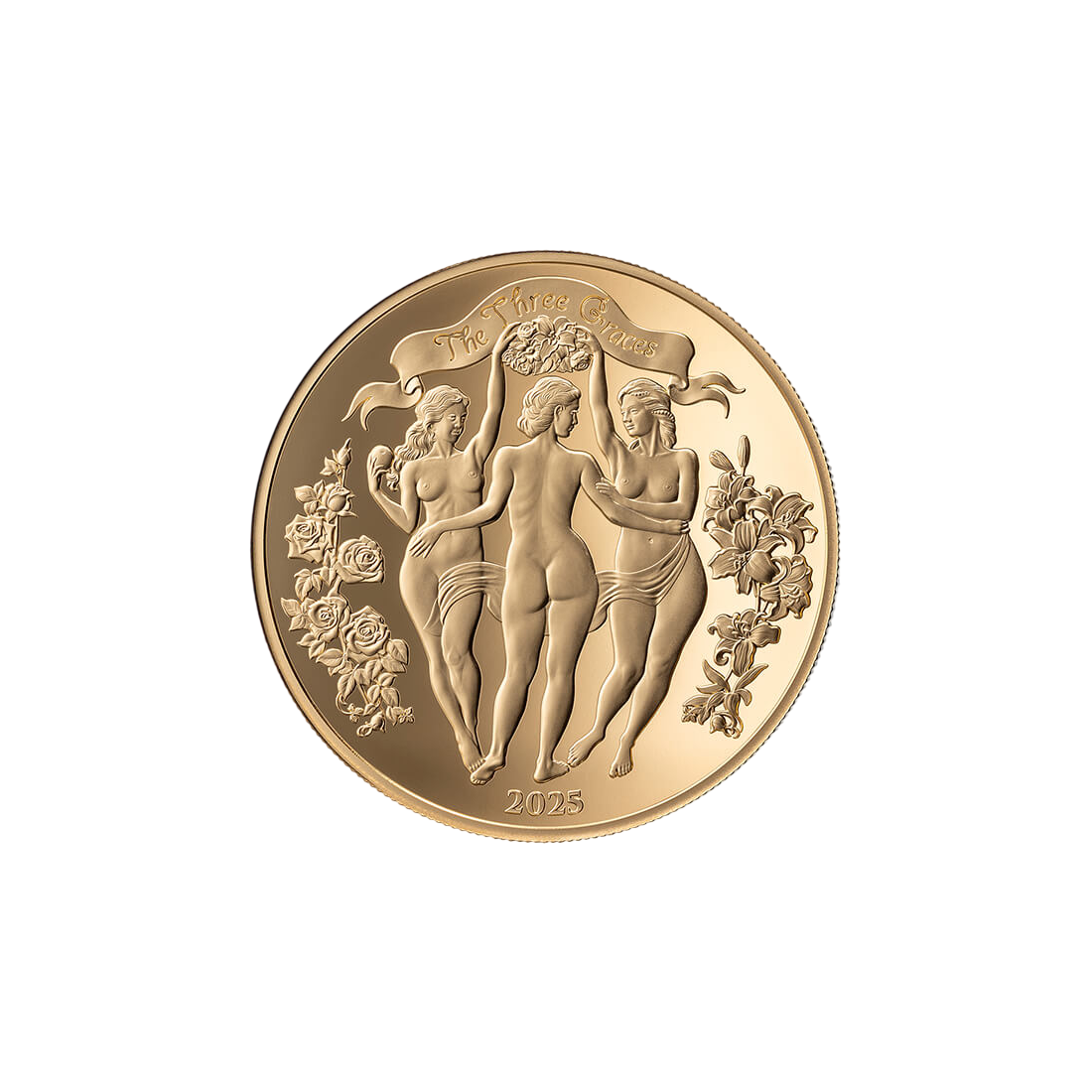 Three Graces 1 oz 2025 Golden Edition silver coin – a luxurious investment in full gold plating