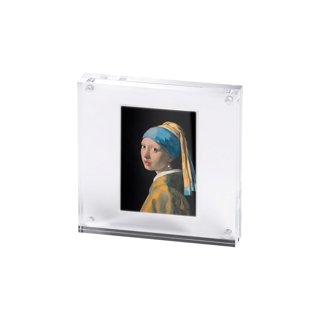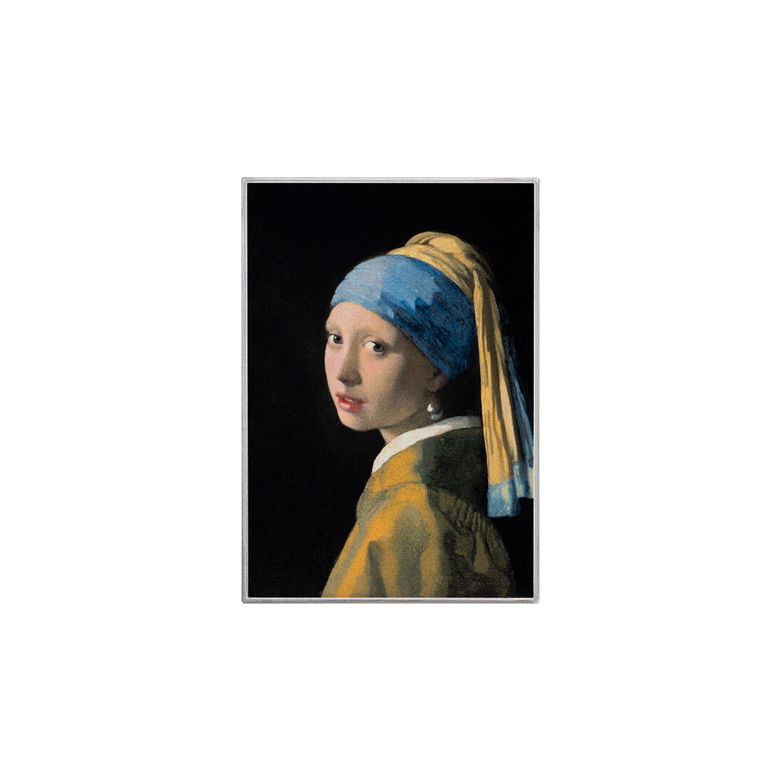The coin was made in an unusual rectangular format measuring 74 x 51.80 mm, which gives it the character of a miniature painting. Thanks to the use of advanced digital printing technology, one of the most important works of Dutch painting – a portrait by Johannes Vermeer – was reproduced on the surface of the silver. The precision with which the details have been rendered, including the famous pearl and the subtle tonal transitions of chiaroscuro, makes this coin a unique numismatic achievement. The mirror finish of the background further emphasizes the prestigious nature of the issue.