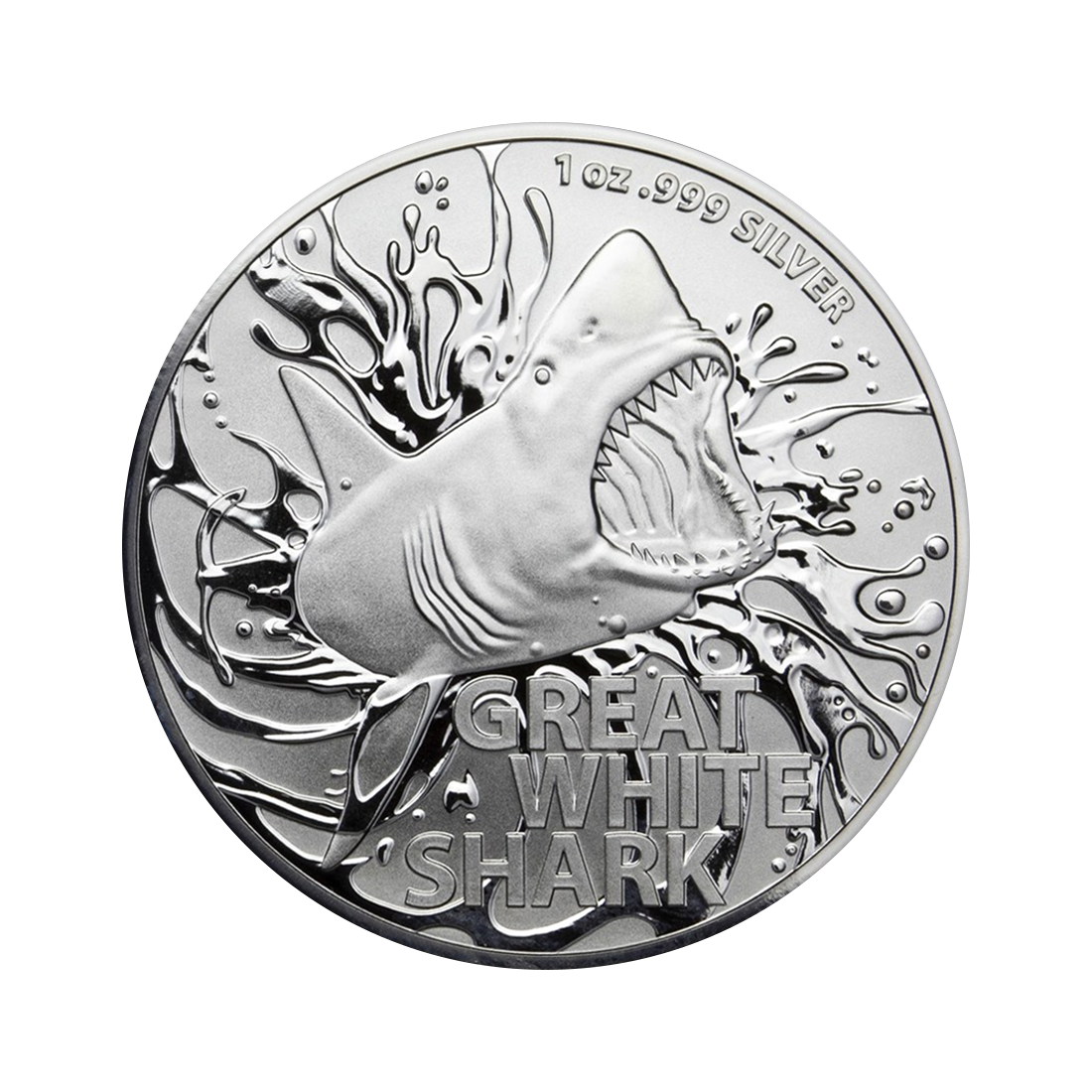 Great White Shark 1 oz silver coin - 24-hour shipping!