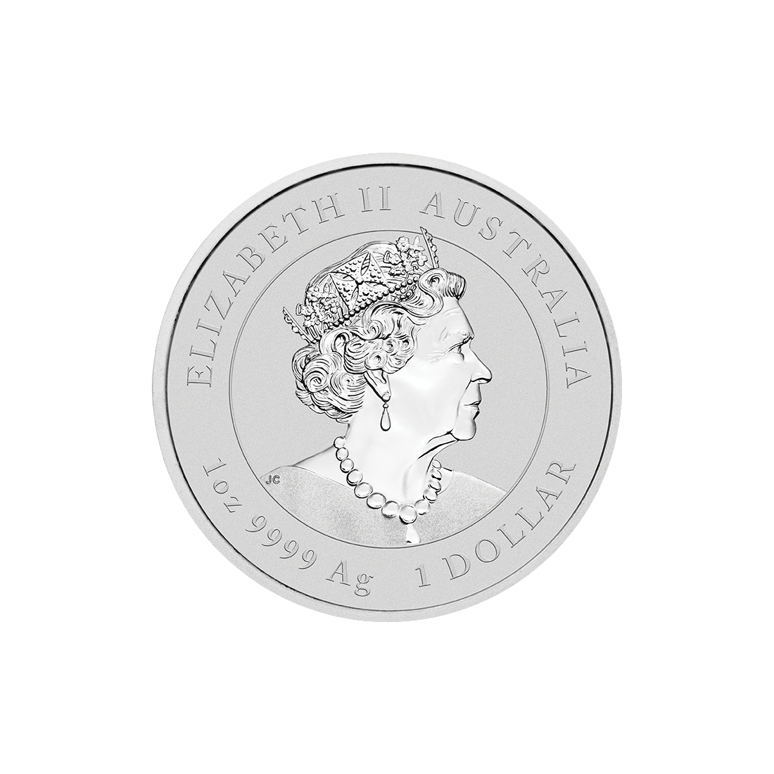 The obverse of the coin features a bust of Queen Elizabeth II. Around it are inscribed details about the issuing country, the coin's face value, its weight, and the silver fineness.