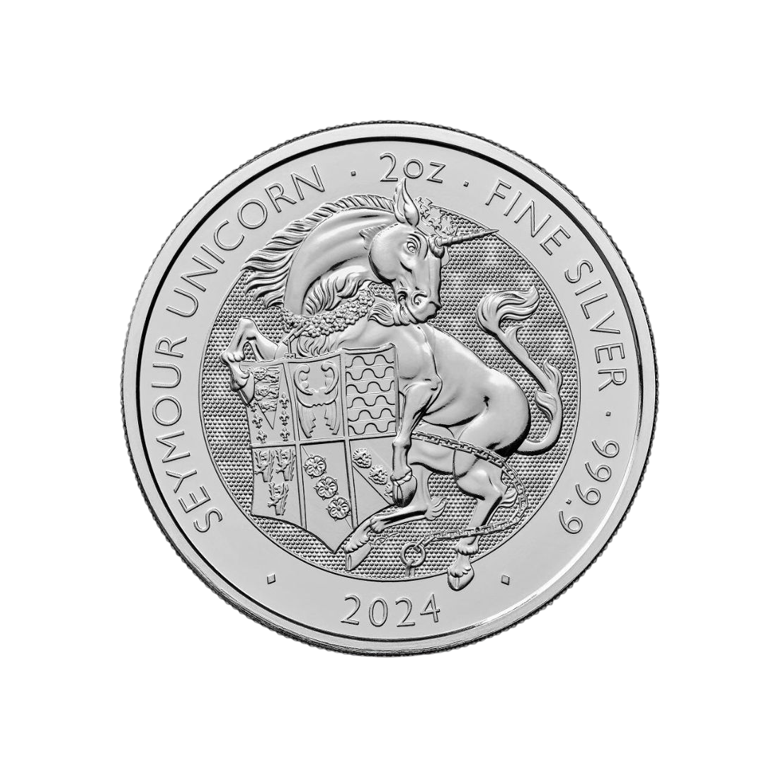 The Tudor Beasts: Seymour Unicorn 2 oz silver coin is a unique choice for investors seeking a stable investment and collectors who appreciate craftsmanship and historical symbolism. Minted by the renowned British mint, The Royal Mint, this coin is part of the prestigious "The Royal Tudor Beasts" series, which celebrates the legacy of the Tudor dynasty by depicting ten heraldic beasts.
