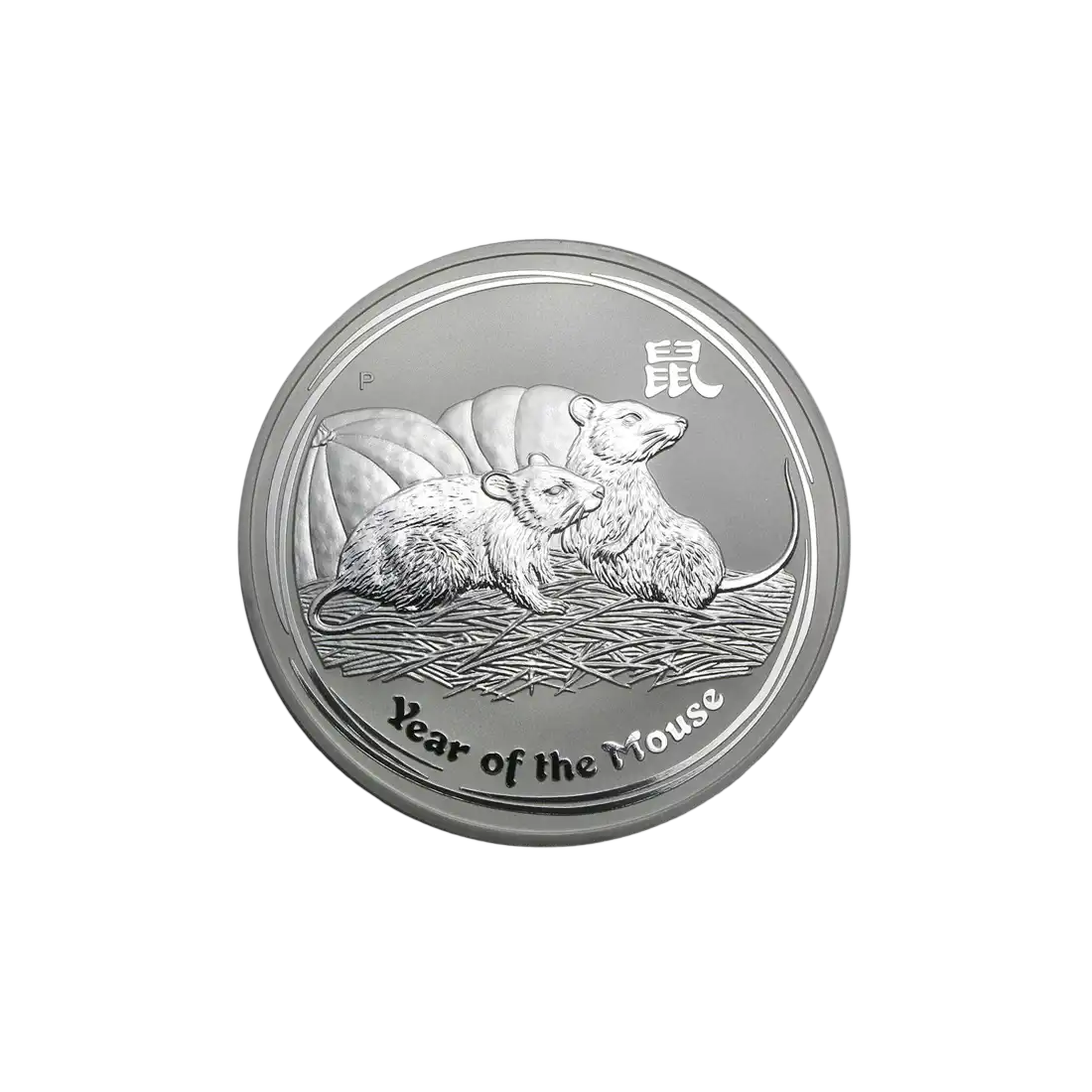 The reverse of the coin features two mice against a backdrop of straw sheaves, a reference to the Chinese zodiac sign symbolizing resourcefulness, intelligence, and prosperity. The design is subtle yet rich in detail, a feature that sets Australian minting apart from other bullion products. The obverse features the traditional image of Queen Elizabeth II along with the denomination and year of issue. This coin combines the qualities of pure investment silver with artistic craftsmanship, making it an excellent addition to any precious metals collection.