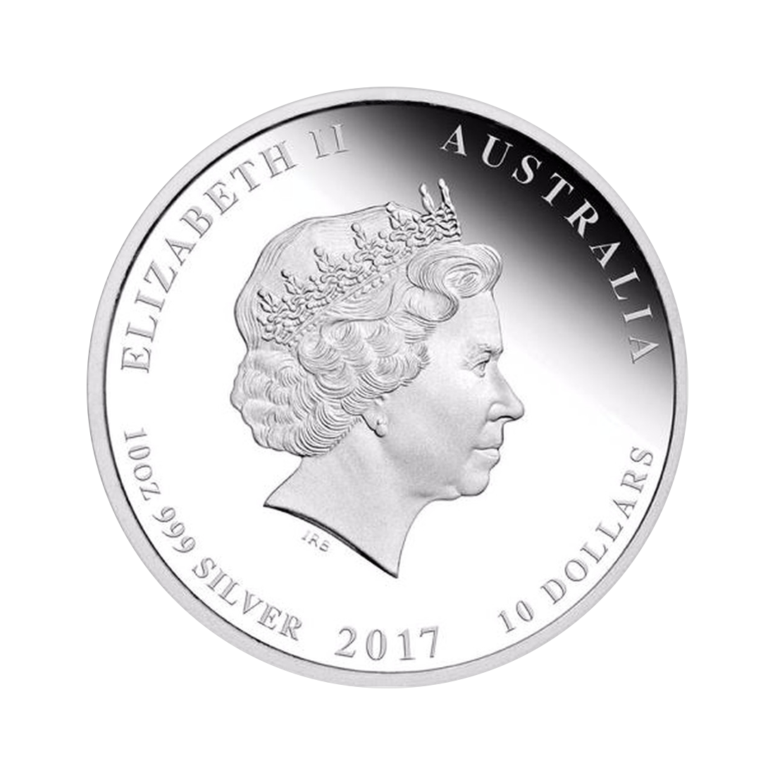 The obverse of the coin invariably features the image of Queen Elizabeth II. It also bears the coin's denomination—10 Australian dollars—and the silver fineness.