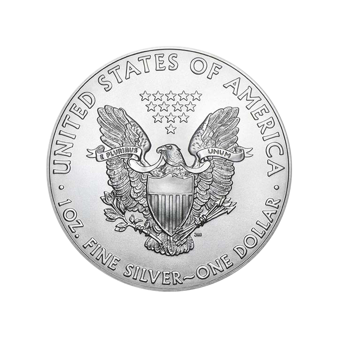 The coin is one of the flagship investment products from the United States Mint ( US Mint). The coin has a face value of $1 (one US dollar), which is purely symbolic. As with all bullion coins, i.e. those minted for investment purposes, the value of the 1 oz Silver American Eagle coin is calculated based on its precious metal content, in this case 1 troy ounce of silver.