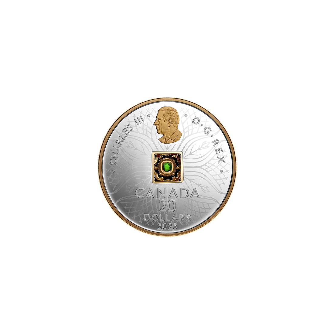 Ammolite, used in this issue, is one of the rarest gemstones, formed from prehistoric ammonite shells. Its intense, multicolored play of colors is not the result of processing – it is the result of natural geological processes. Each stone differs in its color and reflection patterns, which means that no two coins in this series are identical. This makes each piece not only unique, but also more valuable from an investment perspective.