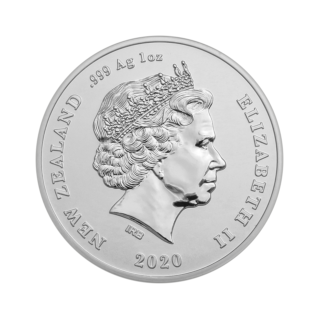The obverse of the coin features an image of Queen Elizabeth II of Great Britain, designed by Ian Rank-Broadley. Additionally, the obverse includes information about the issuing country, weight, pure silver content, and date of issue.