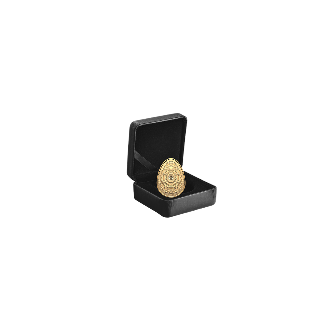 The coin is crafted from nearly 2 ounces of 999.9-fine gold, ensuring its liquidity on international precious metals markets. The coin’s oval shape presents a technical challenge that only the world’s finest mints can meet. The precise engraving depicts a multi-petaled rose motif, symbolizing harmony, love, and rebirth. The details are accentuated by a Proof finish, which lends the coin a luxurious character and brings out the depth of Dave Melnychuk’s artistic design.