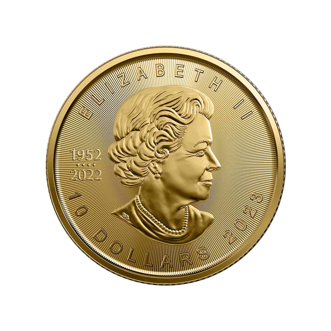 The Maple Leaf is a coin made of the highest quality gold issued by the Royal Canadian Mint with a face value of 10 Canadian dollars. It was produced from deposits mined from local mines.