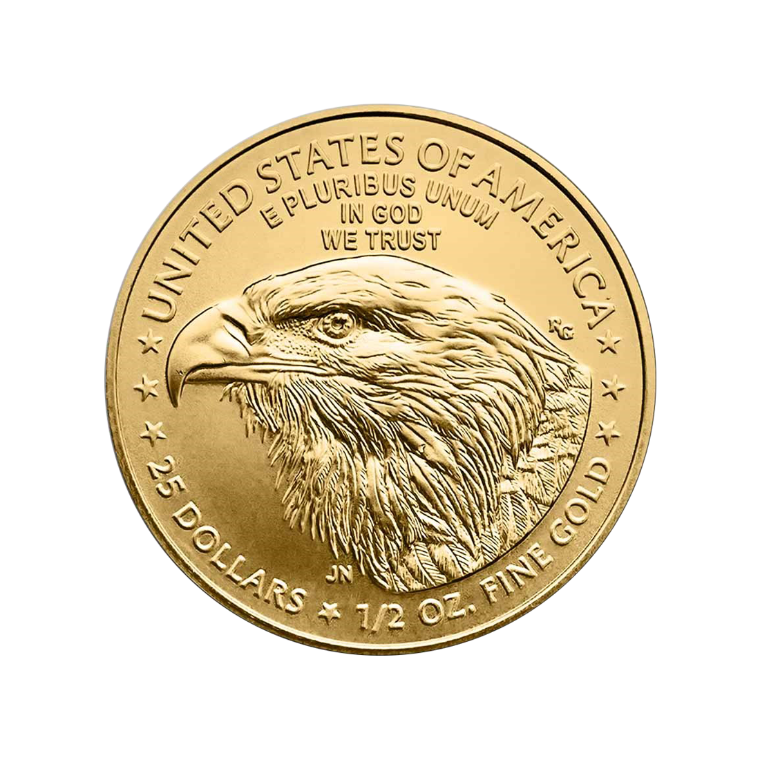 The American Eagle 1/2 oz is a gold coin with a face value of US$25, made of 24-karat gold with an admixture of silver and copper. It is produced at the United States Mint from bullion sourced locally.