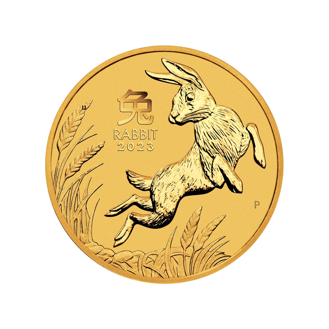 The unique design of these Year of the Rabbit gold coins attracts the attention of both connoisseurs and those just beginning their adventure with numismatics. The reverse of the coin is decorated with a charming rabbit. It is surrounded by delicate grasses swaying in the wind, creating an unusual, harmonious image. In addition, the reverse features the inscriptions "RABBIT 2023," the Chinese character for rabbit, and the letter "P," which is the symbol of the renowned Perth Mint.