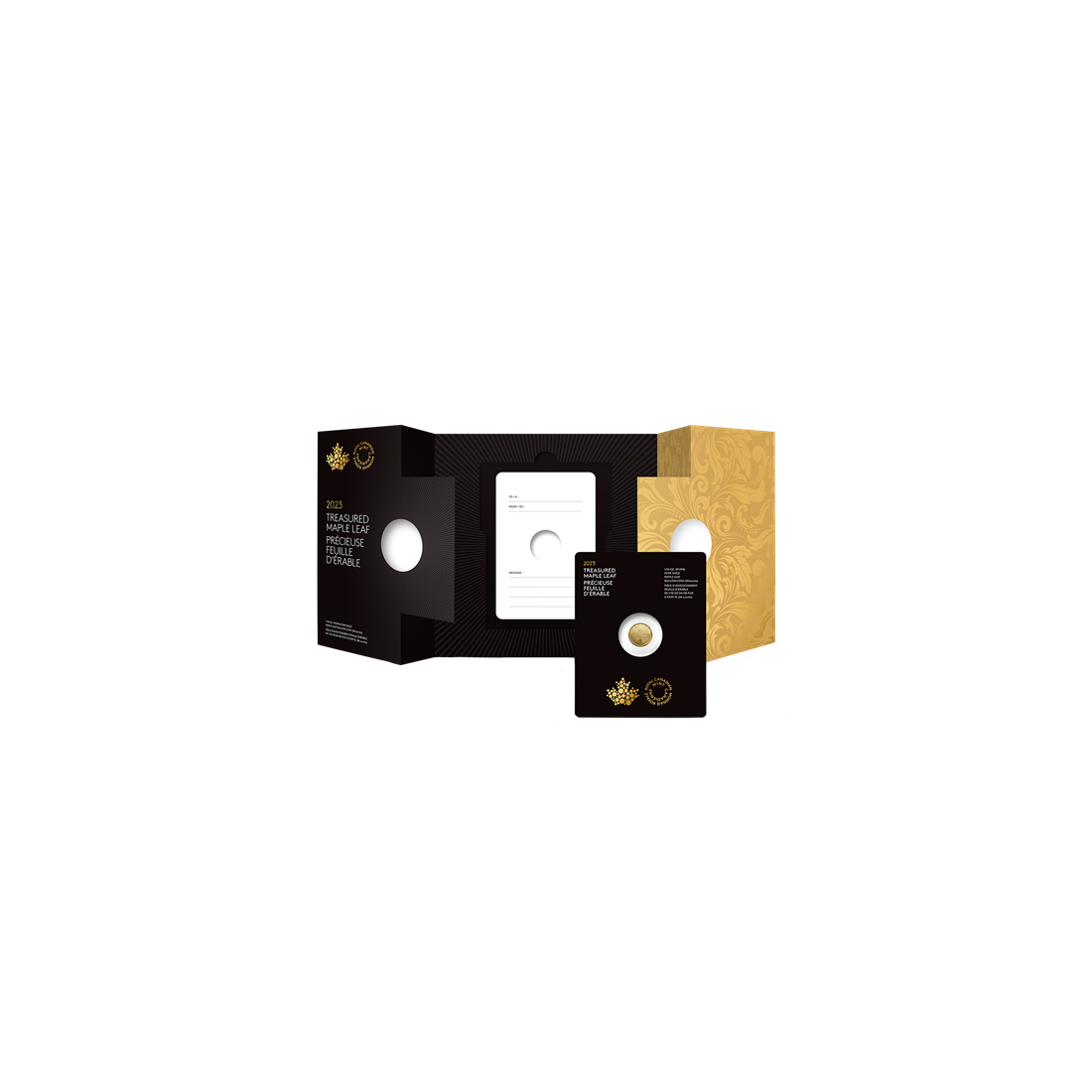 The Royal Canadian Mint has also designed unique packaging for this coin. It comes in an elegant fold-out card that includes information about the fineness and weight. The packaging also features a special space for a handwritten dedication, suggesting that this coin is the perfect gift for celebrating special occasions.