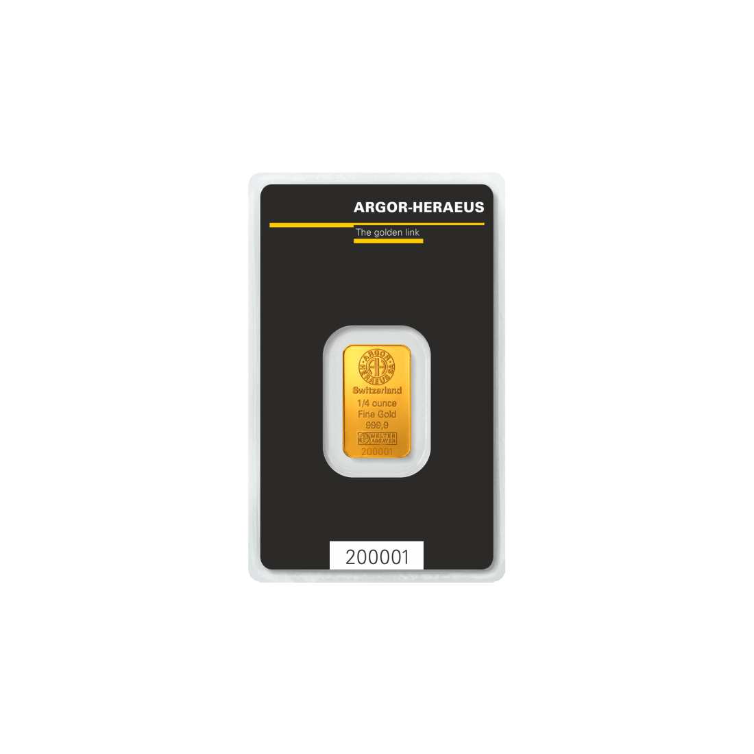 A 1/4 troy ounce (oz) gold bar is a popular investment product, valued for its combination of relatively low purchase price and high liquidity.